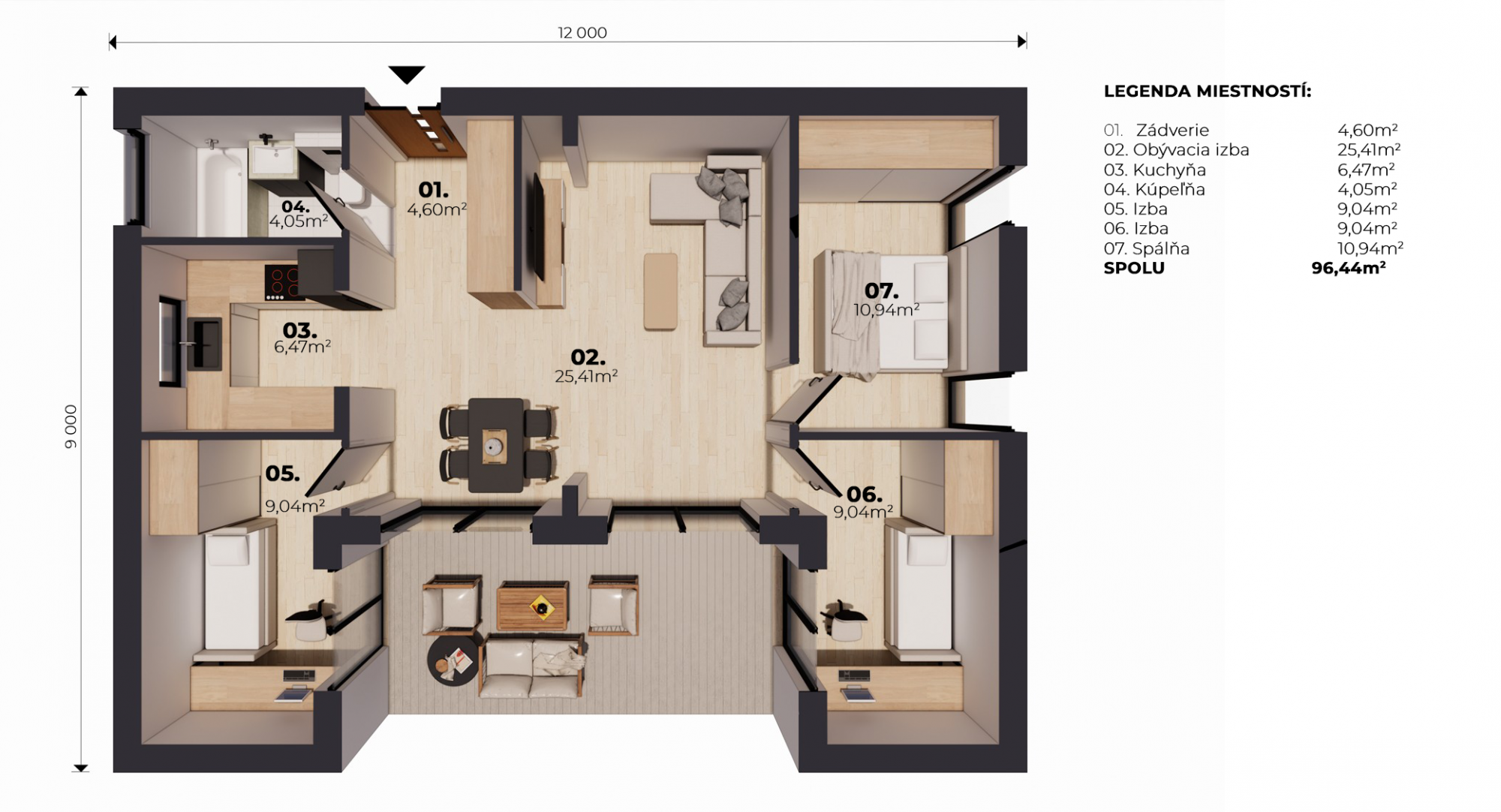 Cena zhotovenia stavby dodávateľskou firmou zahŕňa dom v štandardnom vyhotovení (ŠTANDARD), bez základovej dosky.