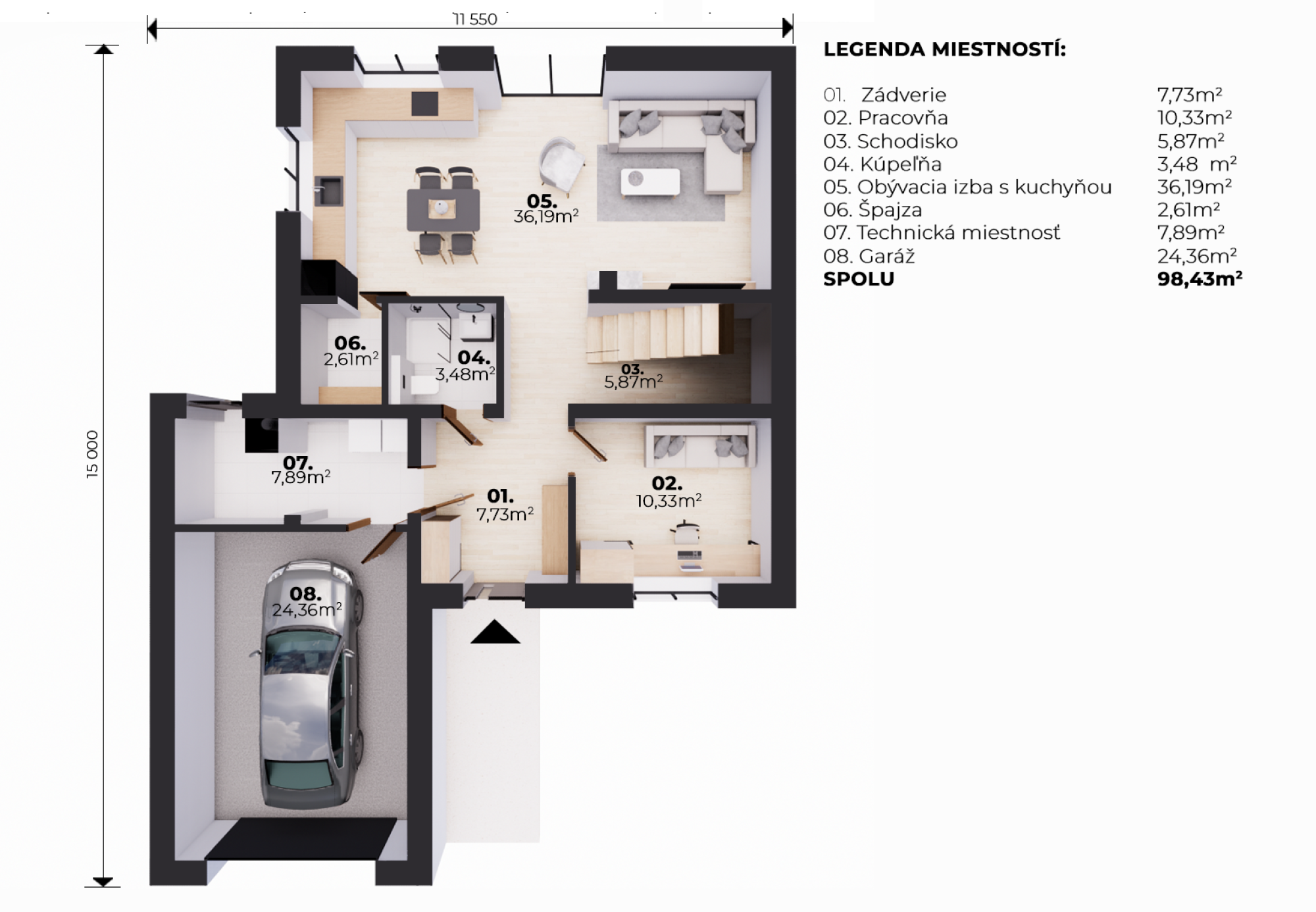 Projekt domu v tvare L ZOJA ponúka kvalitný a moderný priestor na život 5-člennej rodiny. Je to poschodový rodinný dom s úžitkovou plochou 165,23 m2.