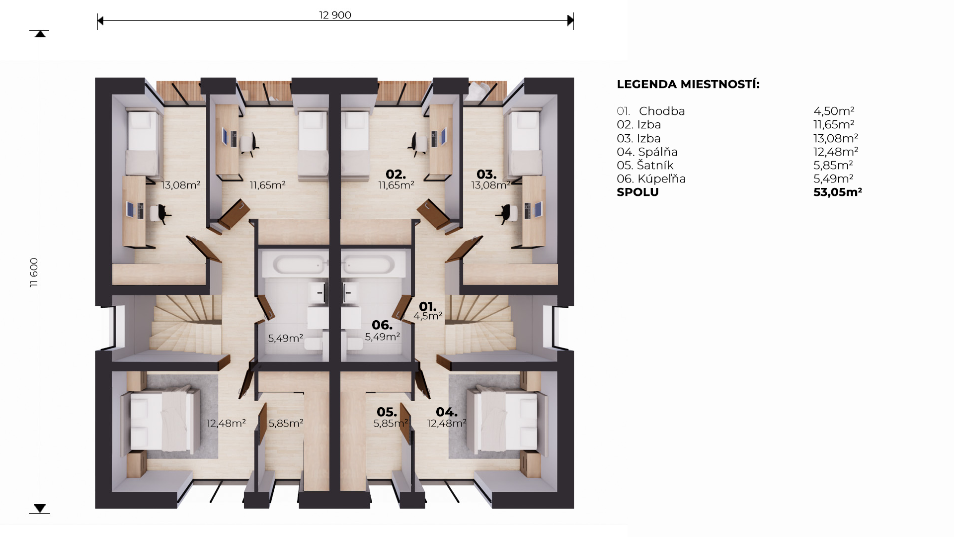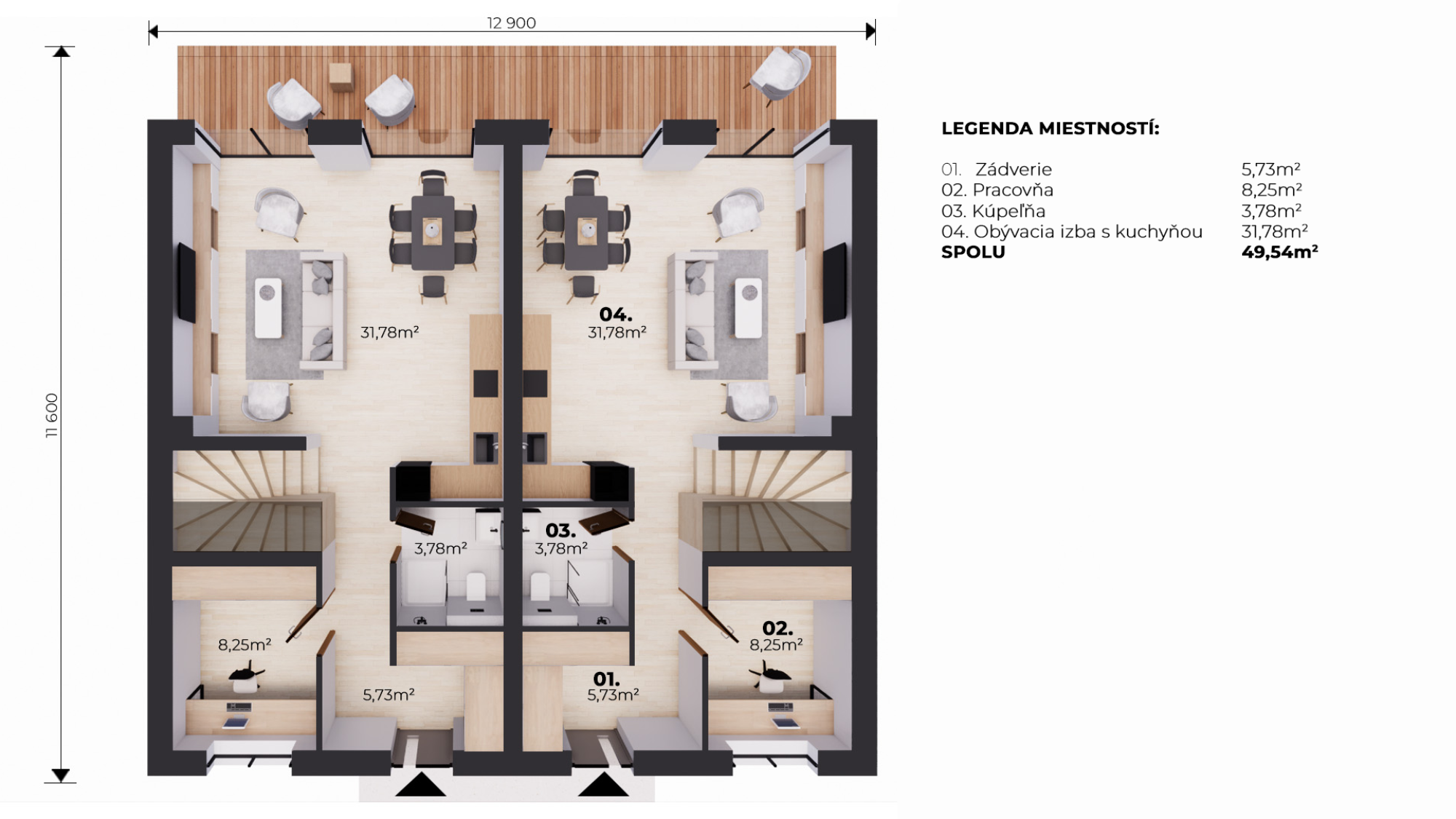 Projekt domu SANDRA je rodinný dom s dvomi bytovými jednotkami určený pre dve 4-členné rodiny. Celková úžitková plocha jednej bytovej jednotky domu je 71,18 m2.