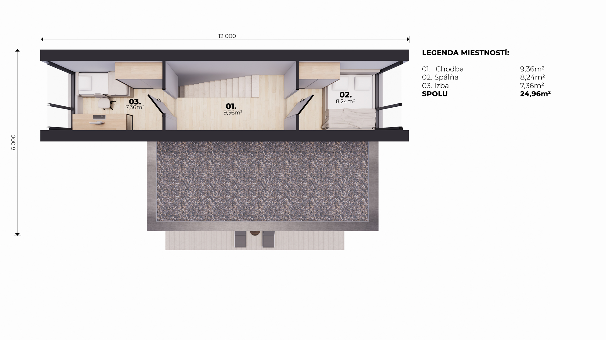 Projekt GABRIELA predstavuje moderný rekreačný dom vyrobený z ekologických CLT panelov, ktoré zabezpečujú výborné tepelnoizolačné vlastnosti, pevnosť a zdravé vnútorné prostredie. Montovaný dom s rozlohou 71 m2 je ideálny pre rekreačné bývanie alebo ako menší celoročný dom pre trojčlennú rodinu. Fasáda domu kombinuje elegantný plech s prírodným dreveným obkladom, vďaka čomu harmonicky zapadne do prírodného prostredia aj na vidiecky pozemok.